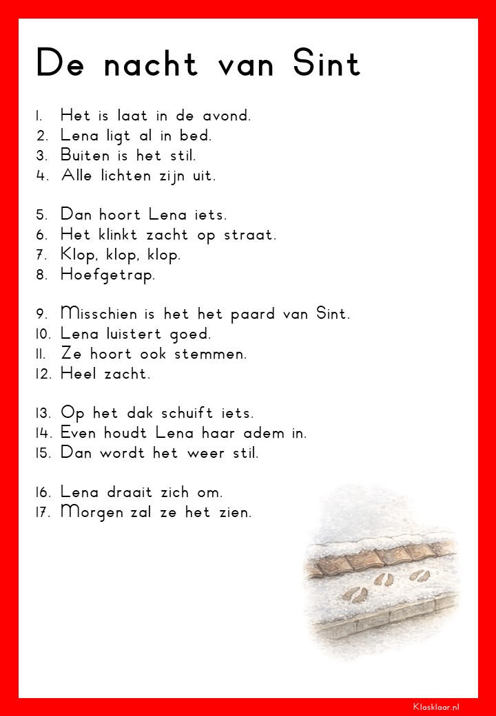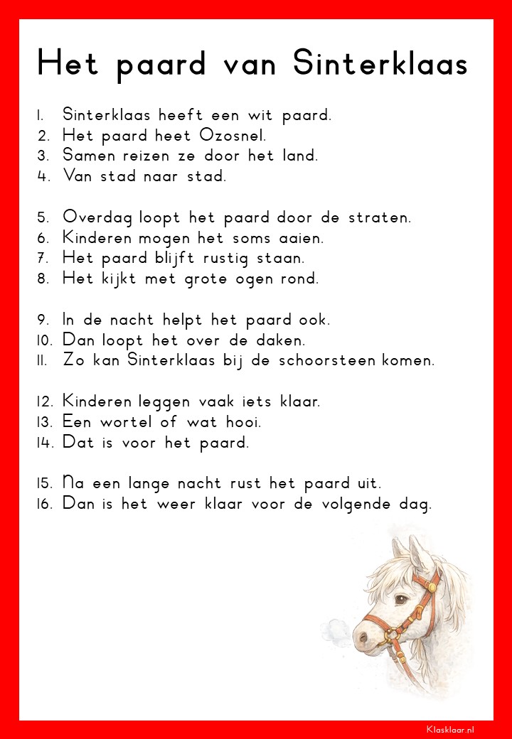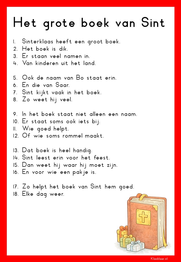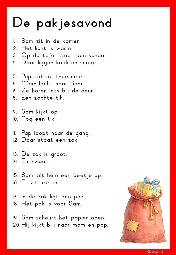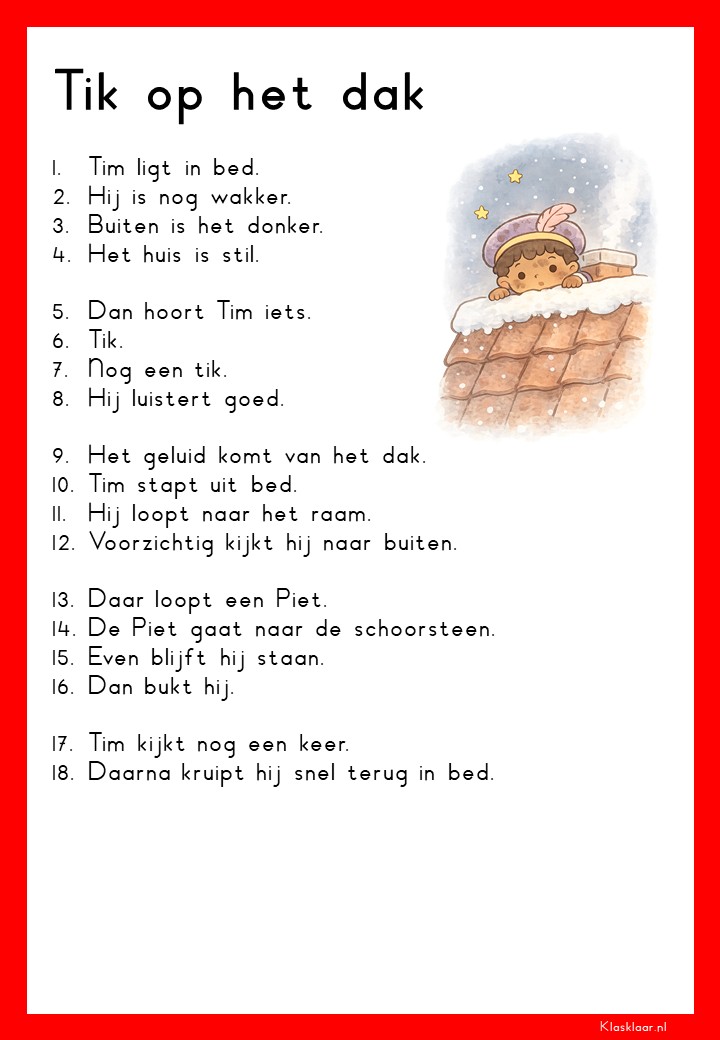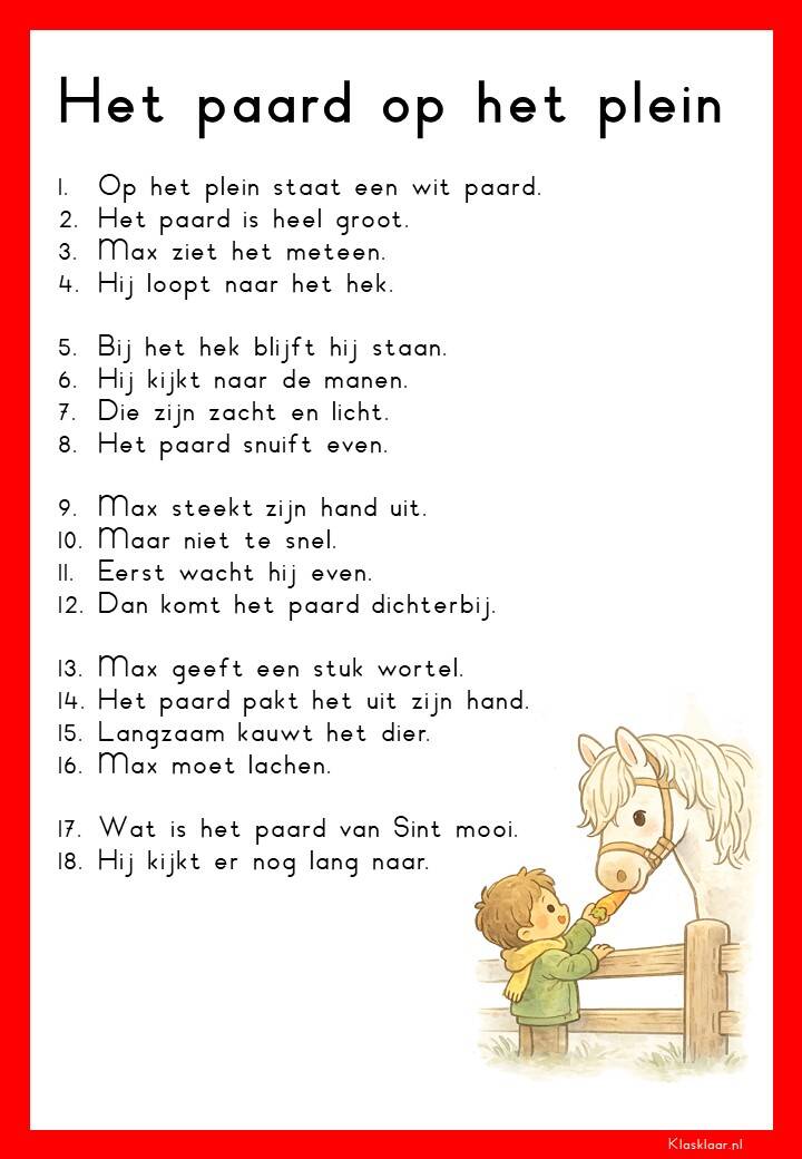Op deze pagina vind je leesteksten voor groep 3 over het thema Sinterklaas. De verhalen sluiten aan bij de belevingswereld van jonge lezers en gaan over pakjes, Pieten, het paard en het feest in december. Elk thema bevat 12 teksten: 6 op M3-niveau en 6 op E3-niveau. Zo kunnen leerlingen stap voor stap oefenen met lezen terwijl ze genieten van een herkenbaar en gezellig onderwerp.