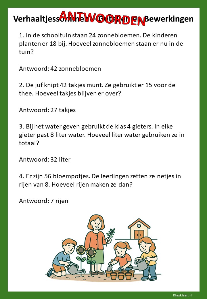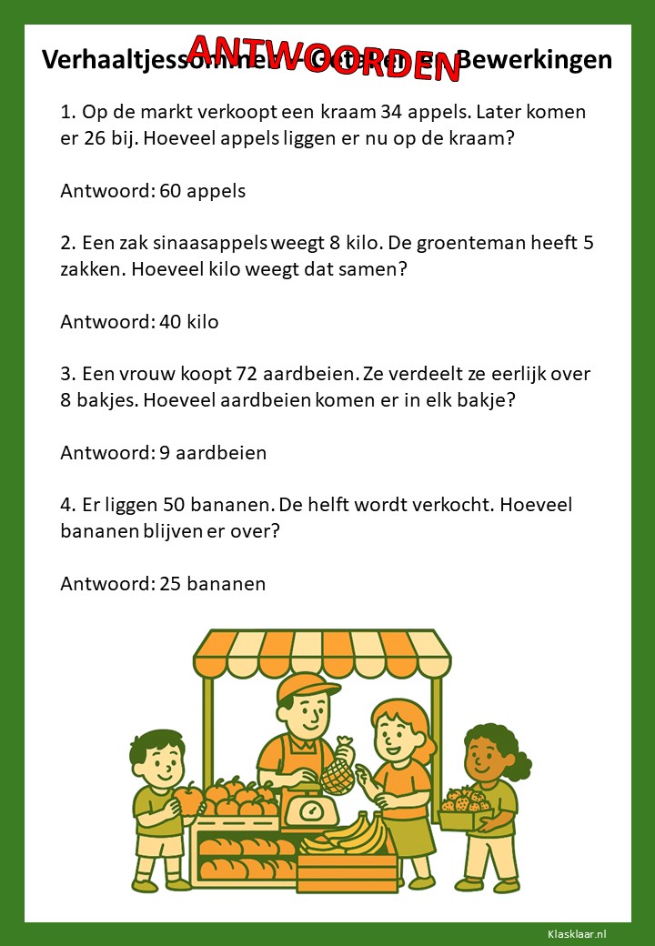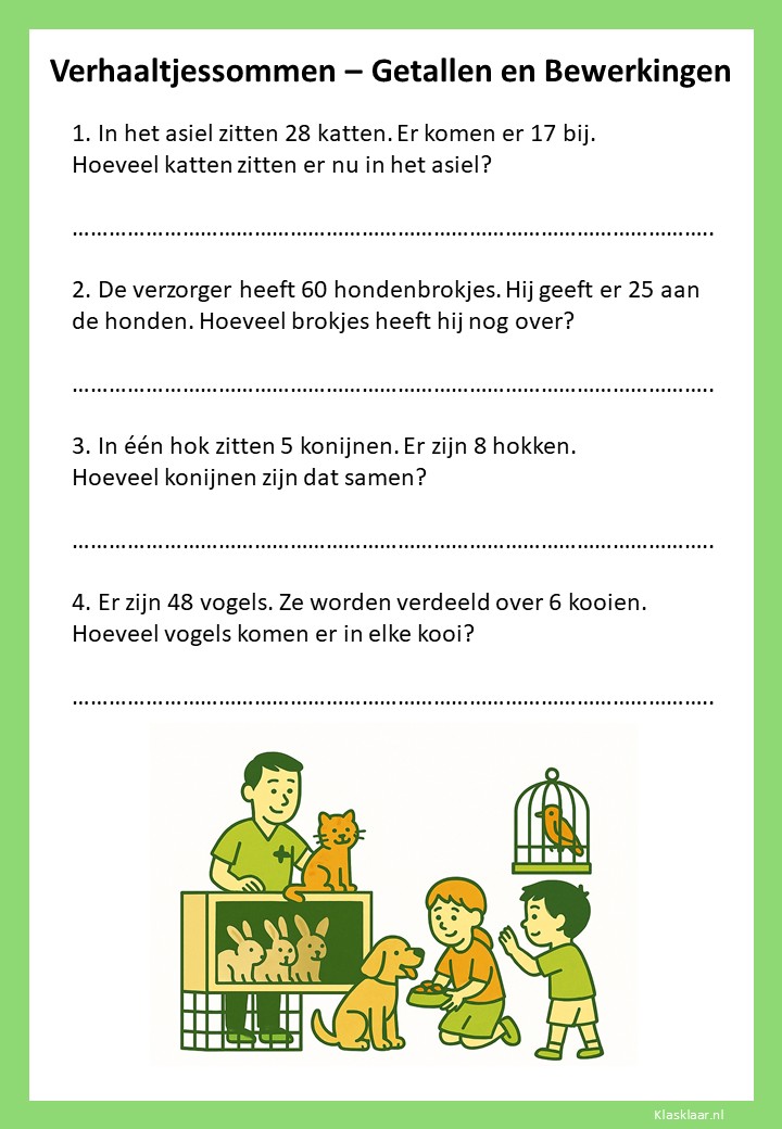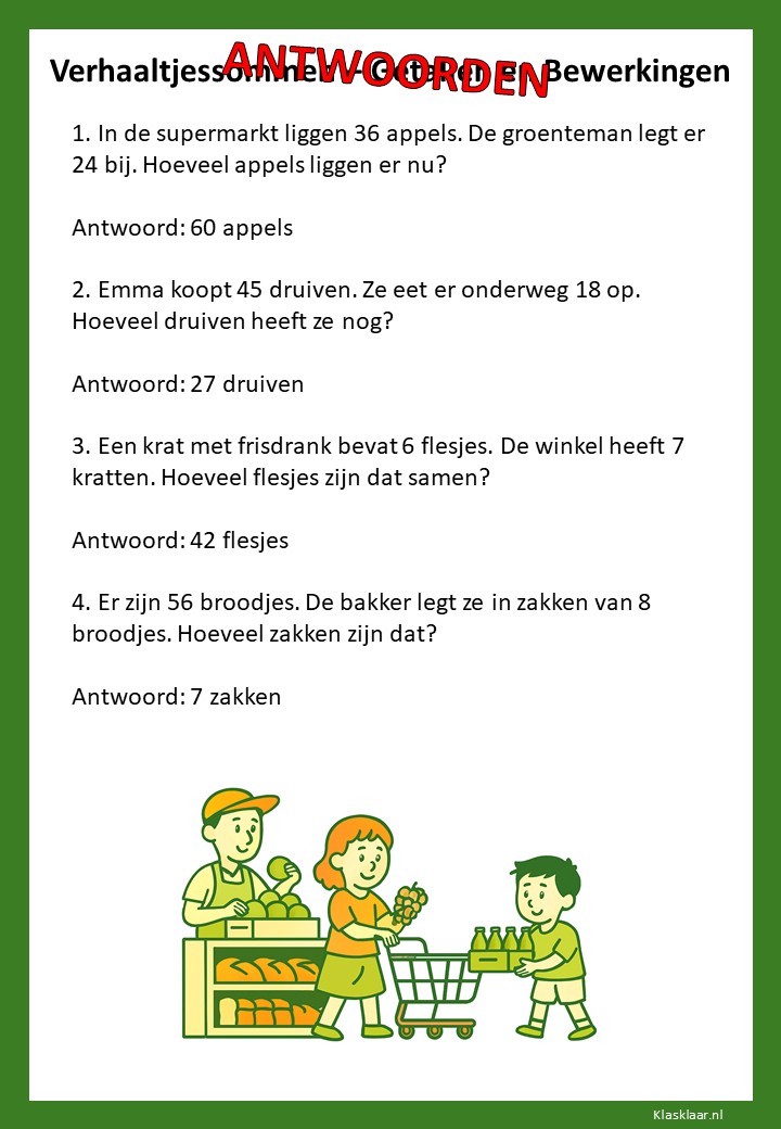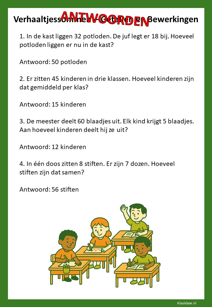Met verhaaltjessommen leren kinderen in groep 4 rekenen in echte situaties. Ze oefenen met optellen, aftrekken en de eerste vermenigvuldigingen en delingen in contexten die herkenbaar zijn uit hun dagelijks leven. De werkbladen helpen leerlingen om goed te lezen, te begrijpen wat er gevraagd wordt en de juiste bewerking te kiezen. Zo versterken ze niet alleen hun rekenvaardigheid, maar ook hun taalbegrip en logisch denken.