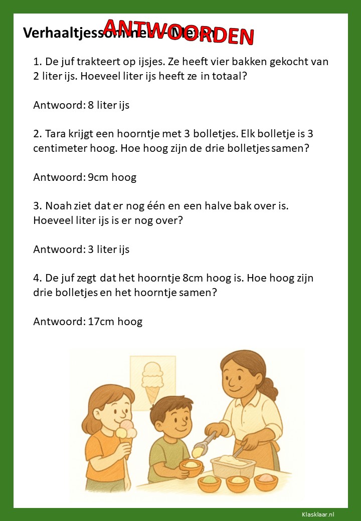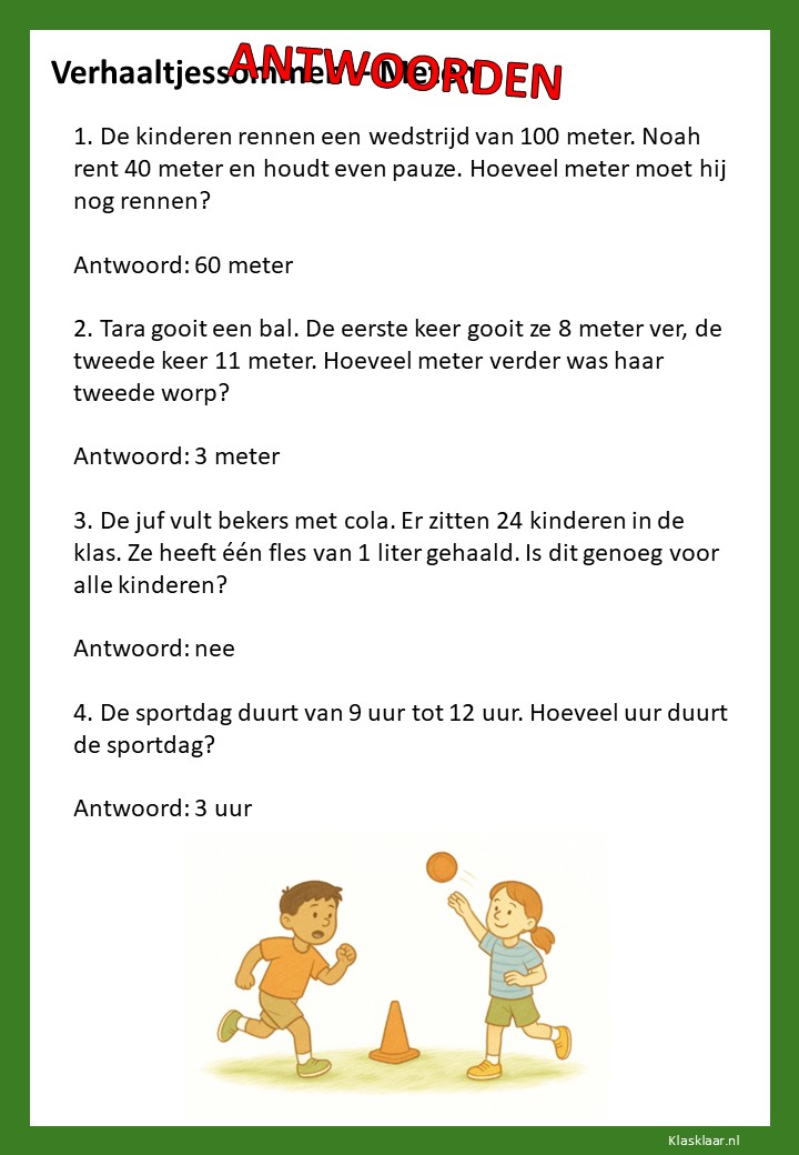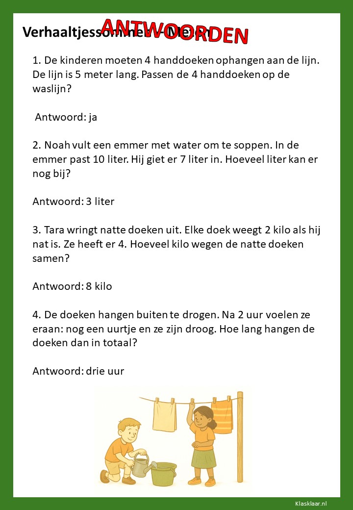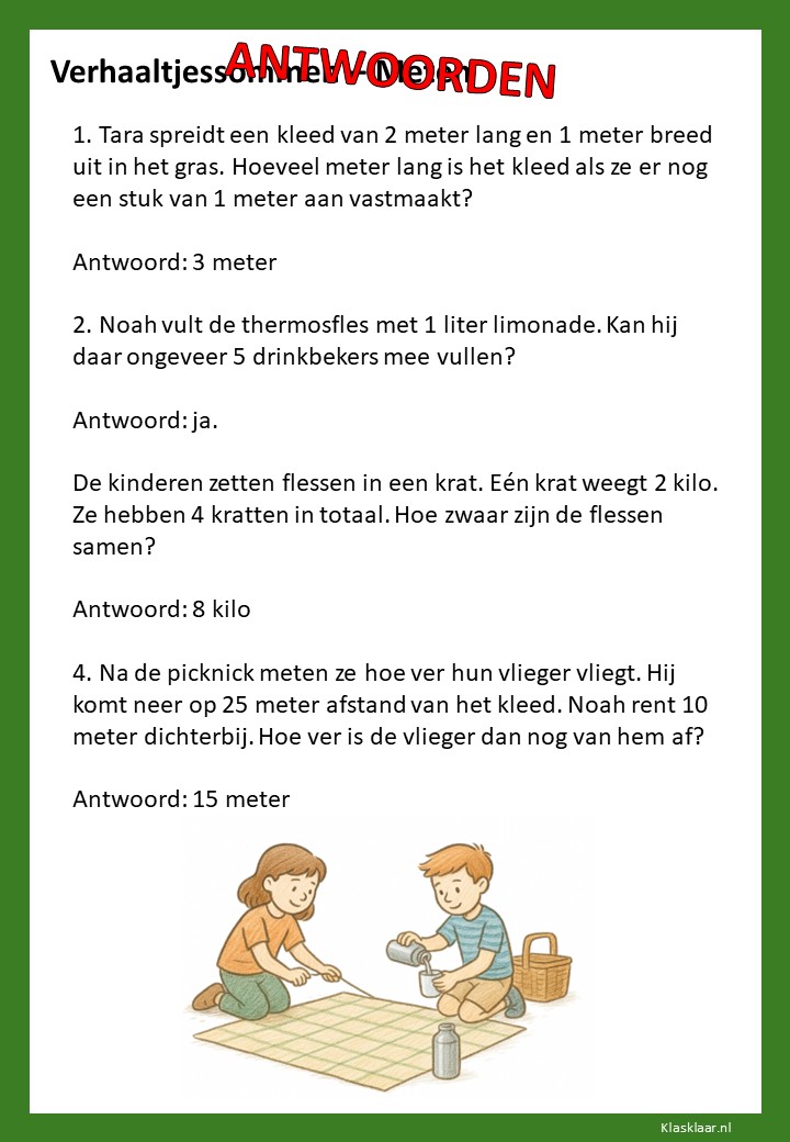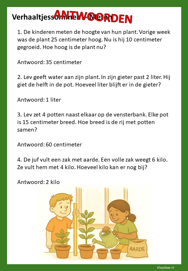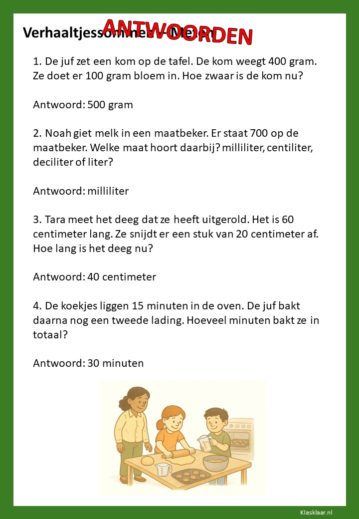 Bij deze verhaaltjessommen over meten oefenen kinderen met lengte, gewicht, inhoud en tijd in herkenbare situaties. Ze leren nadenken over welke maat of eenheid past bij een vraag en hoe je die gebruikt om een probleem op te lossen. De werkbladen combineren taal en rekenen, waardoor kinderen leren begrijpen wat een som écht betekent. Zo groeit hun inzicht in meten stap voor stap, met opdrachten die logisch én leuk zijn.