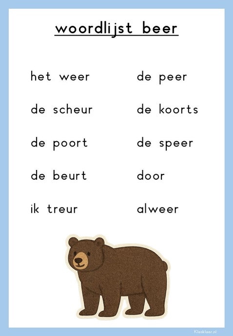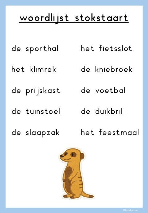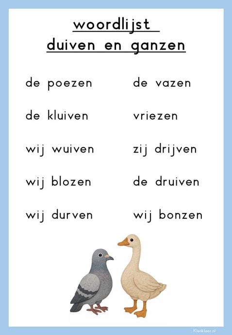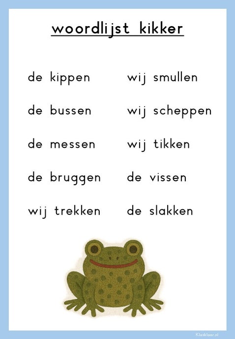 De spellingkaarten met oefenwoorden zijn veelzijdig in gebruik. Je kunt ze printen op A4 om ze zichtbaar op te hangen in de klas, of op A5 om ze te gebruiken als steunkaarten op de datawand of op tafel bij de leerlingen. Plak ze eventueel dubbelzijdig: aan de ene kant de categorie, aan de andere kant de woorden. Daarnaast zijn ze ideaal als dicteekaarten: zet kinderen tegenover elkaar en laat ze elkaar de woorden voorlezen. Zo zijn de kaarten flexibel in te zetten en passen ze bij allerlei werkvormen in de klas.