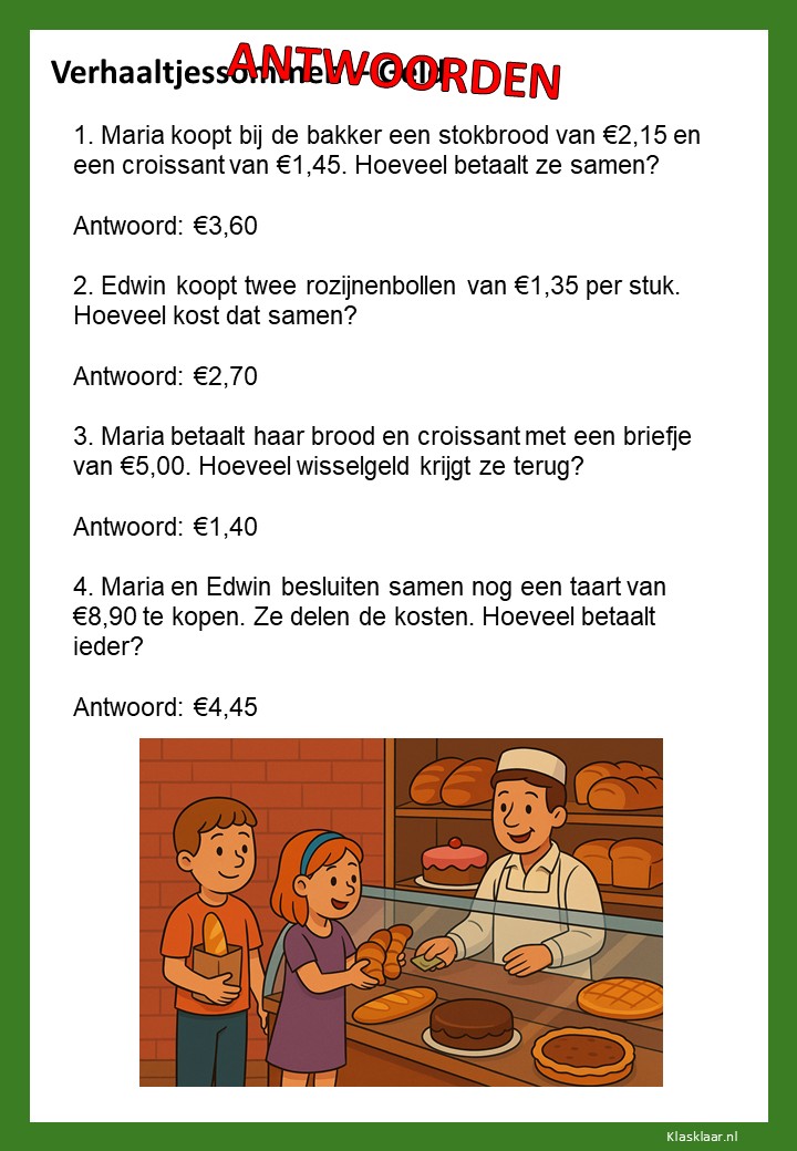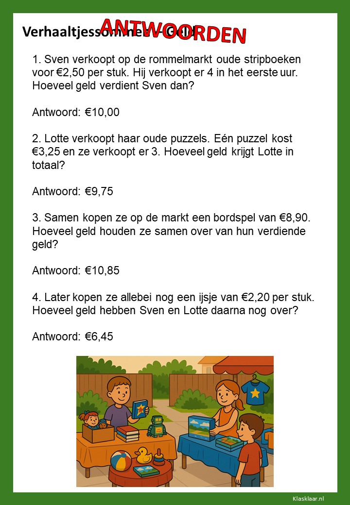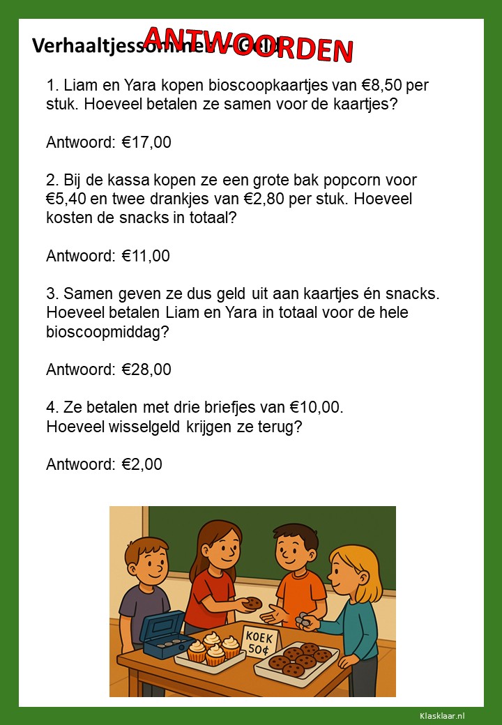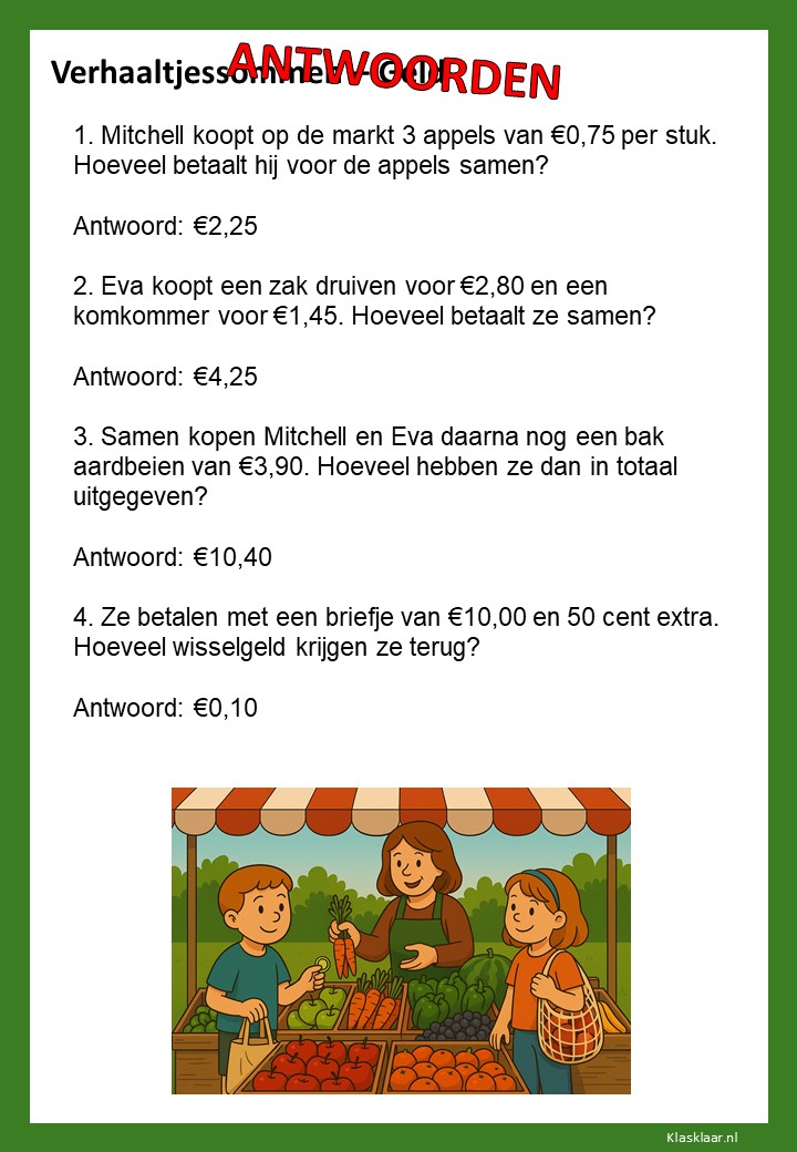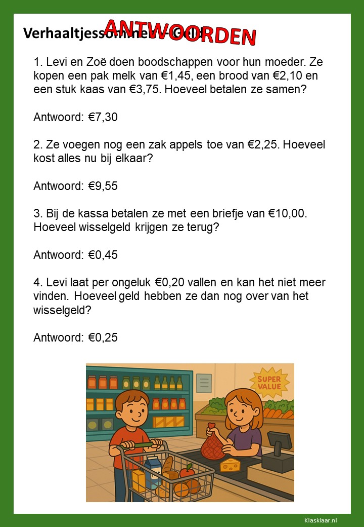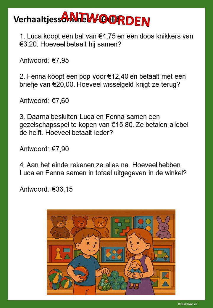 Met deze werkbladen over geld oefenen kinderen het rekenen met euro’s en centen. Ze leren bedragen lezen, optellen, aftrekken en wisselgeld berekenen in herkenbare situaties. De opdrachten sluiten aan bij dagelijkse ervaringen zoals winkelen, sparen en prijzen vergelijken. Zo wordt rekenen met geld concreet, praktisch en leuk – perfect voor in de klas of om thuis te oefenen.