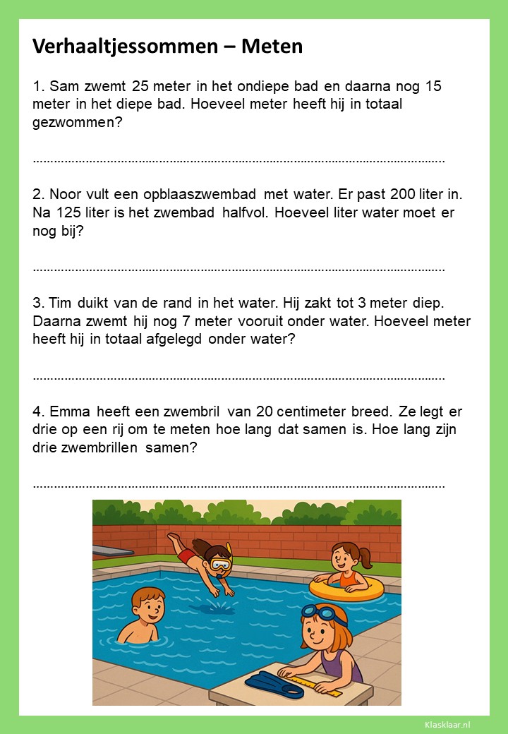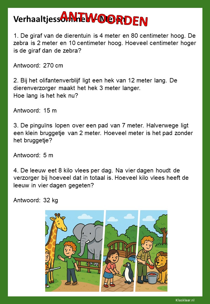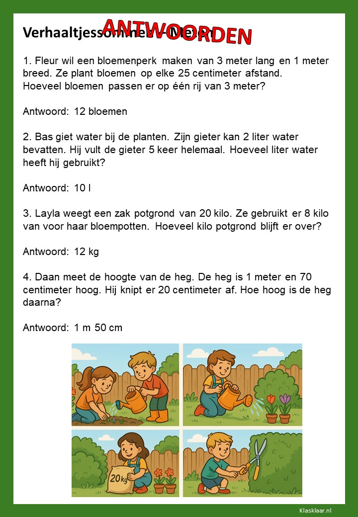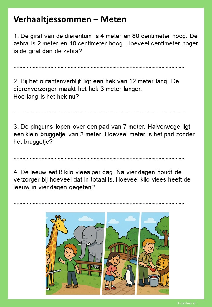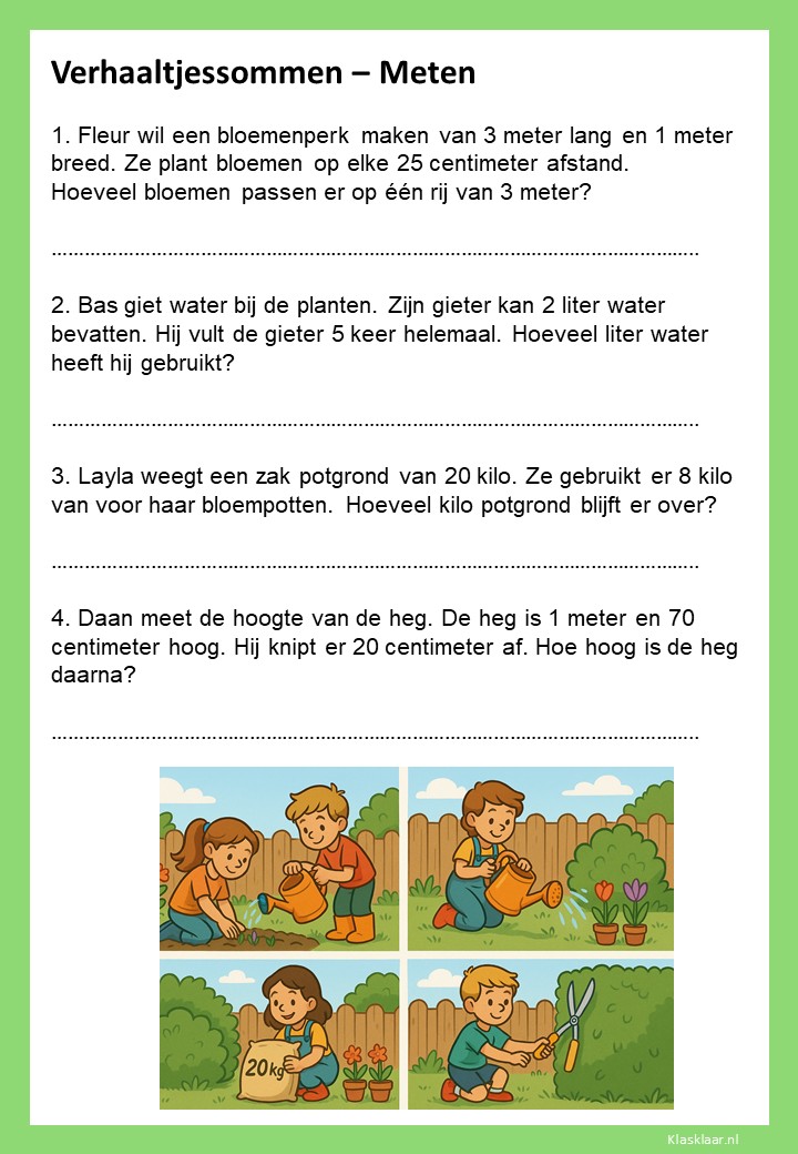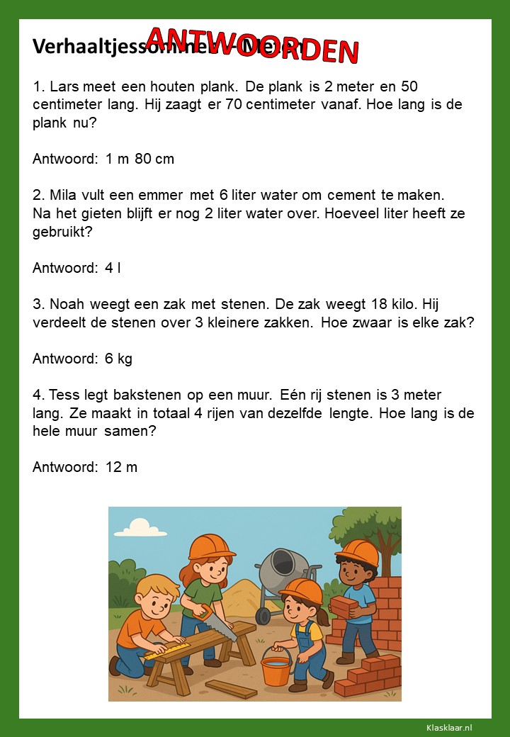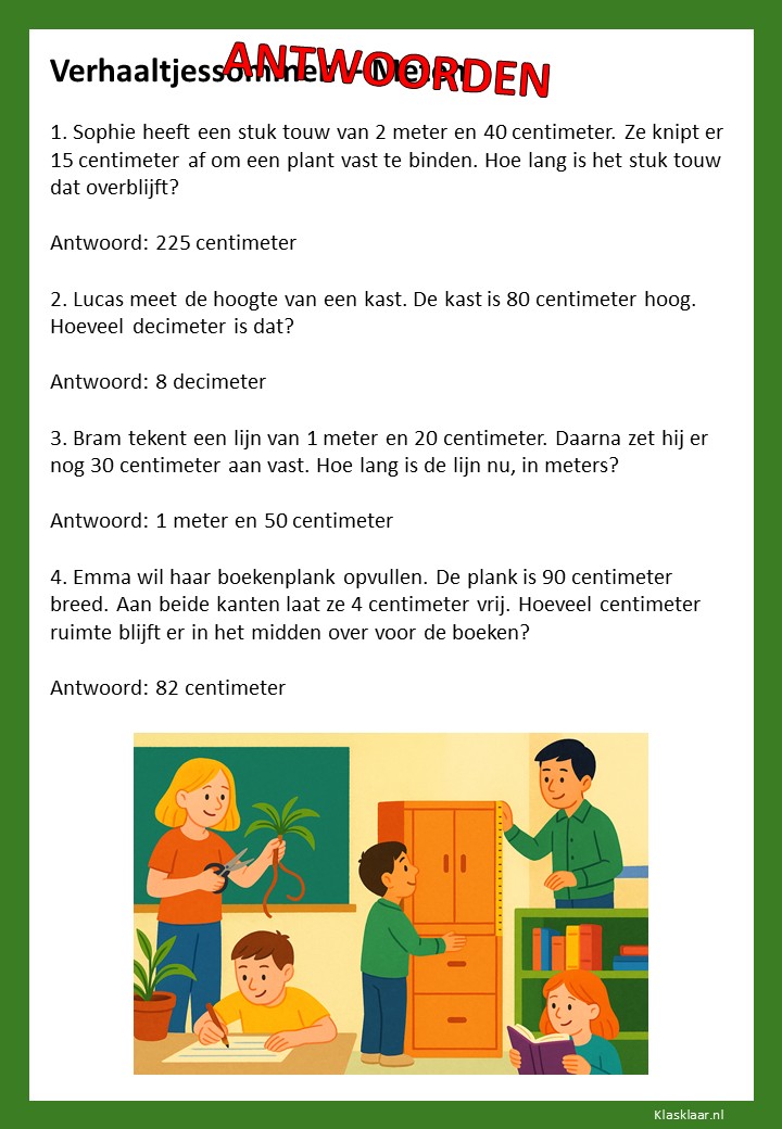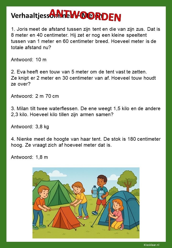 Verhaaltjessommen over meten maken rekenen concreet en betekenisvol. Kinderen passen hun kennis over lengte, gewicht, inhoud, tijd en temperatuur toe in herkenbare situaties. Ze leren lezen, redeneren en de juiste eenheid of bewerking kiezen om tot een oplossing te komen. De opdrachten helpen leerlingen om logisch te denken en verbanden te leggen tussen rekenen en de wereld om hen heen.