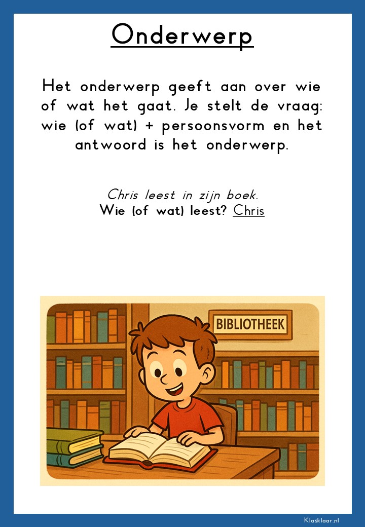 Met deze poster over zinsontleding krijgen leerlingen een duidelijk overzicht van de belangrijkste zinsdelen. Persoonsvorm, onderwerp, gezegde, lijdend voorwerp, meewerkend voorwerp en bijwoordelijke bepaling worden stap voor stap uitgelegd met voorbeelden. De poster maakt grammatica visueel en concreet, zodat leerlingen sneller verbanden zien en de theorie beter onthouden. Ideaal als geheugensteun in de klas of om thuis te oefenen.