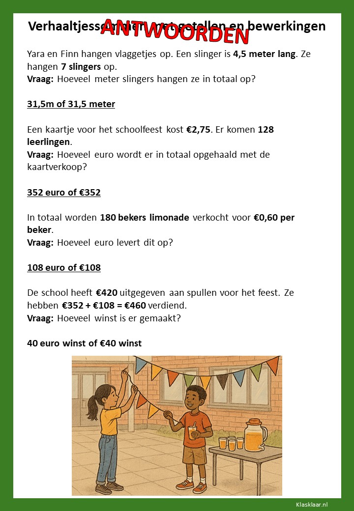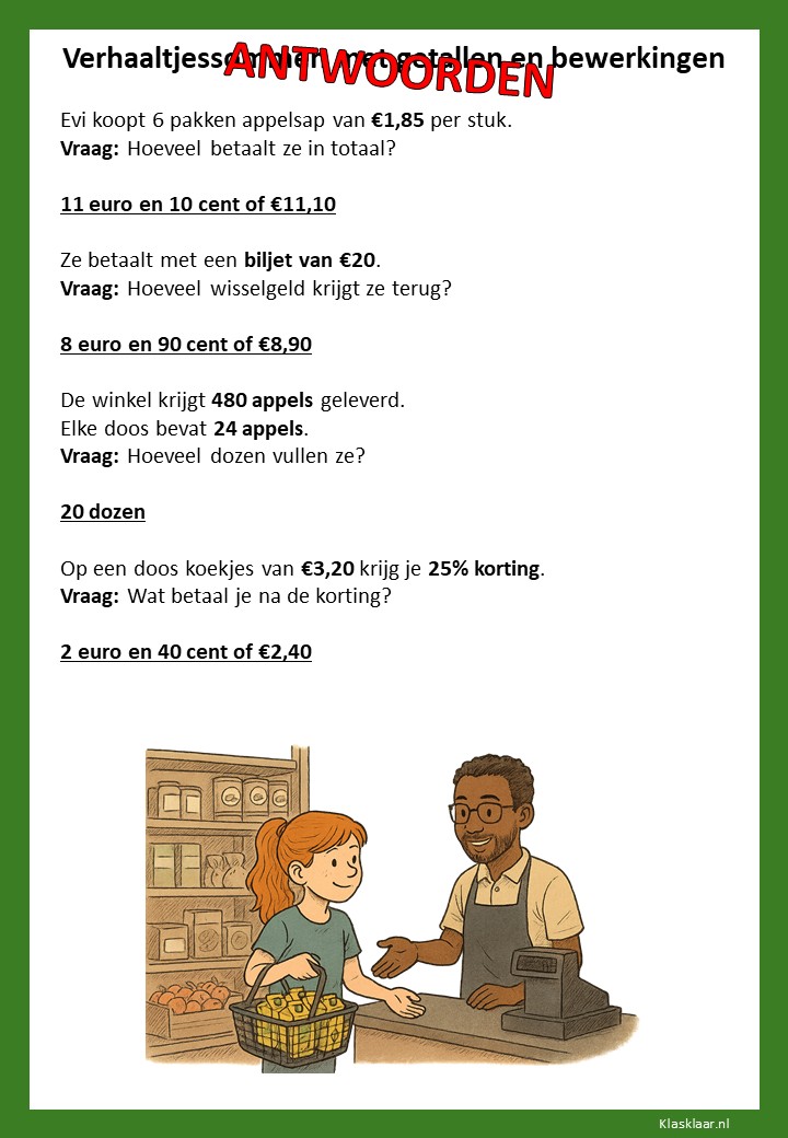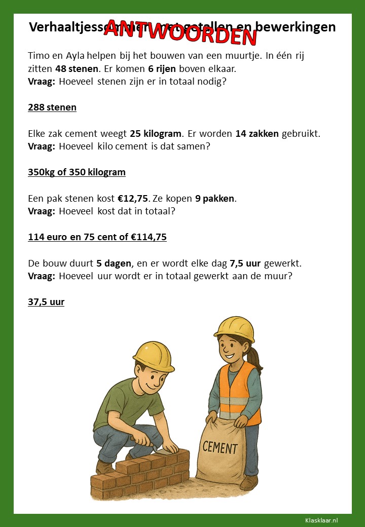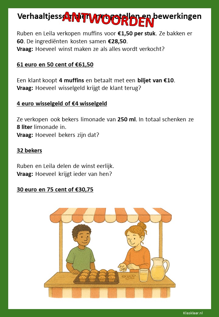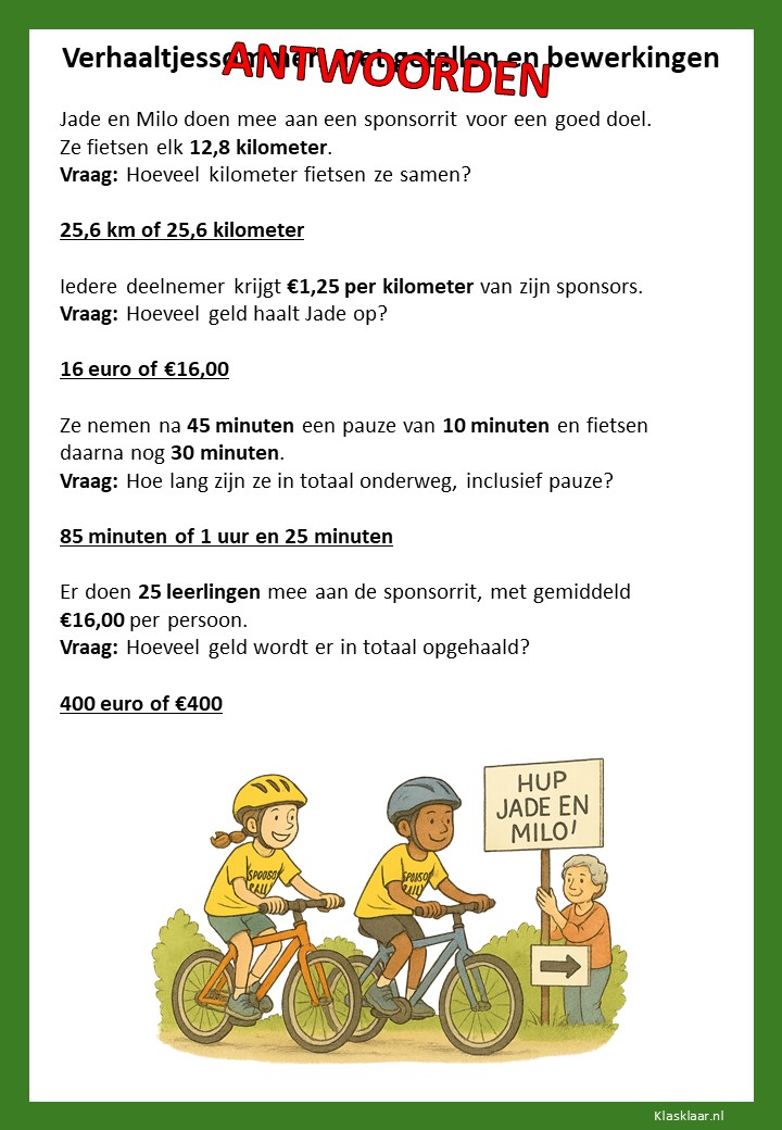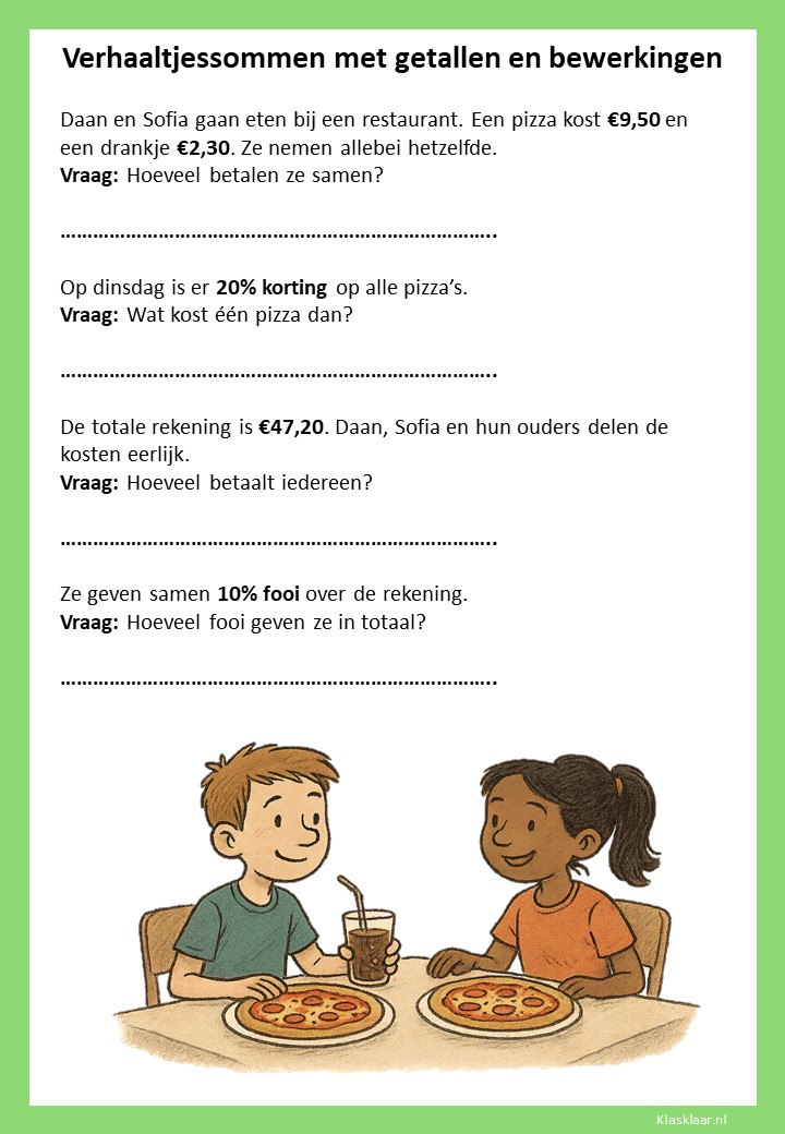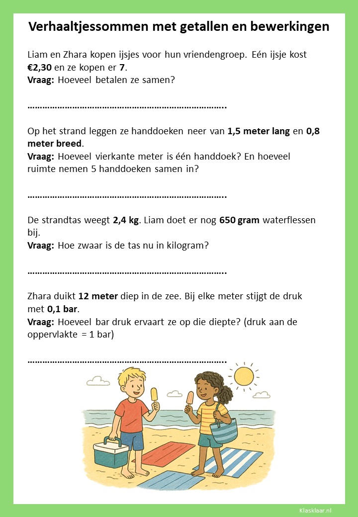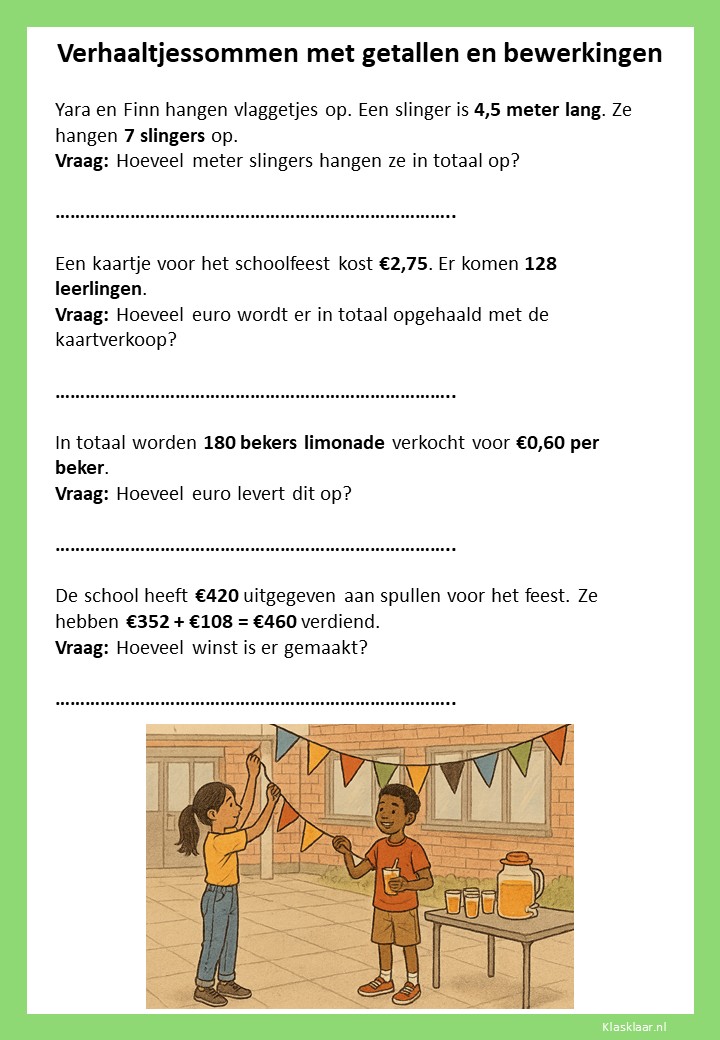 Met deze verhaaltjessommen leren kinderen in groep 7 rekenen in betekenisvolle situaties. Ze passen optellen, aftrekken, vermenigvuldigen en delen toe in realistische contexten en leren goed lezen om te begrijpen wat er precies gevraagd wordt. De opdrachten stimuleren logisch denken, het kiezen van de juiste strategie en het verbinden van taal en rekenen. Zo bouwen leerlingen inzicht én zelfvertrouwen op.