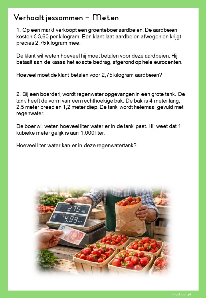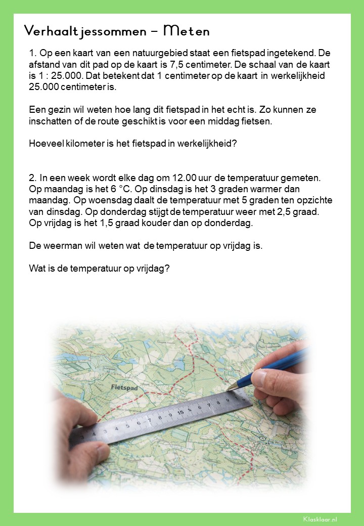 In groep 8 werken kinderen met meten op een hoger niveau. Ze rekenen met lengte, gewicht, inhoud, tijd en temperatuur en leren omrekenen tussen verschillende eenheden. De opdrachten vragen om inzicht en het toepassen van meetkennis in realistische en meerstapsopgaven. Zo bereiden leerlingen zich goed voor op het rekenen met meten in het voortgezet onderwijs.
