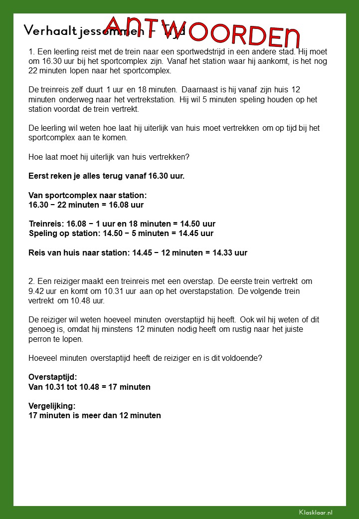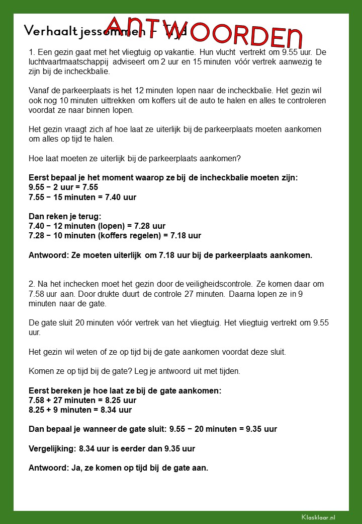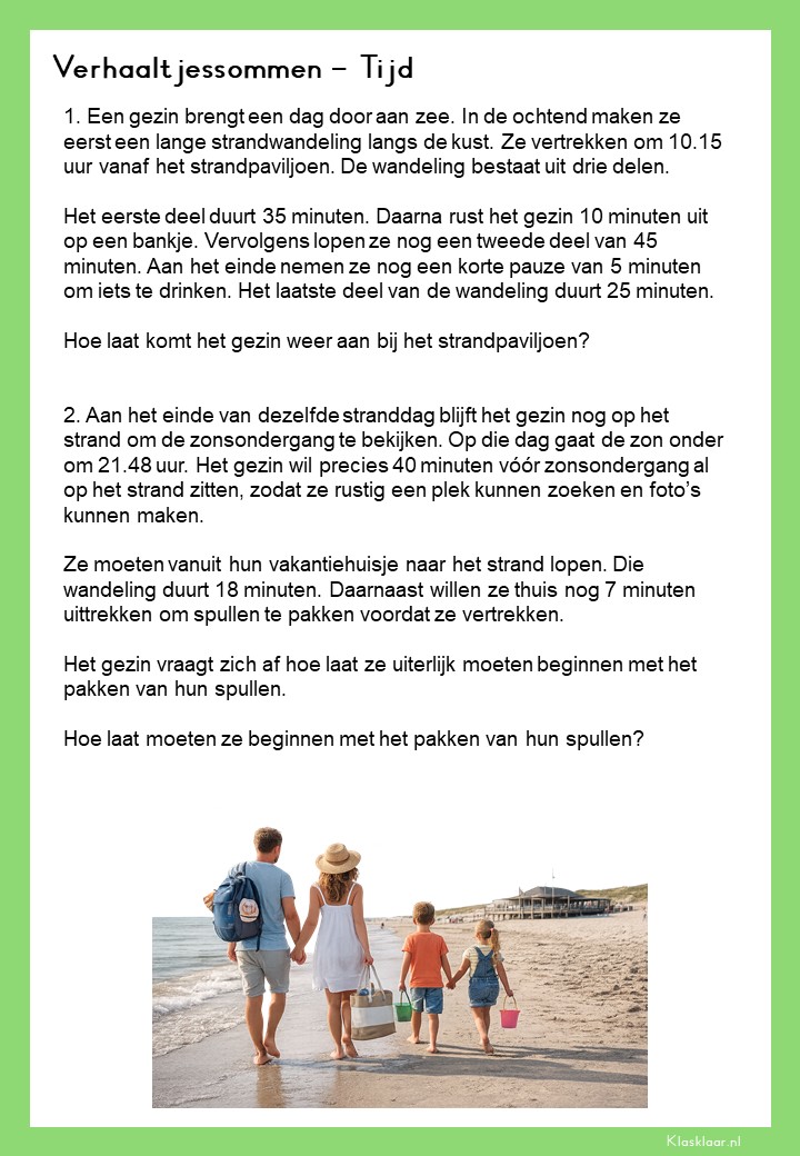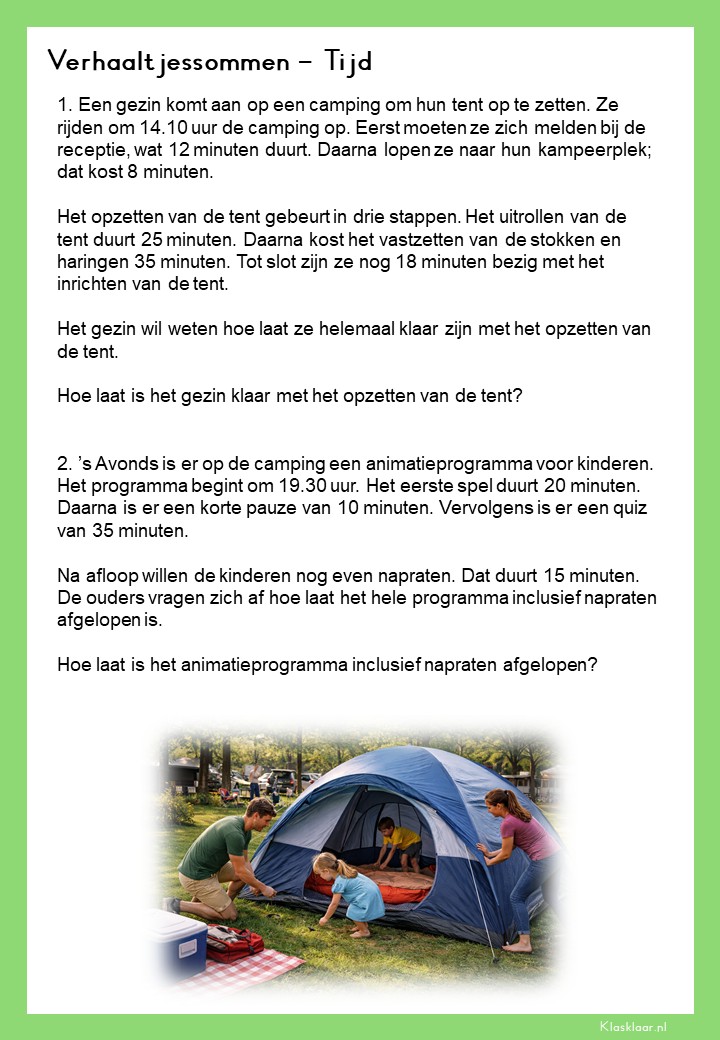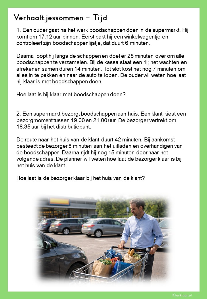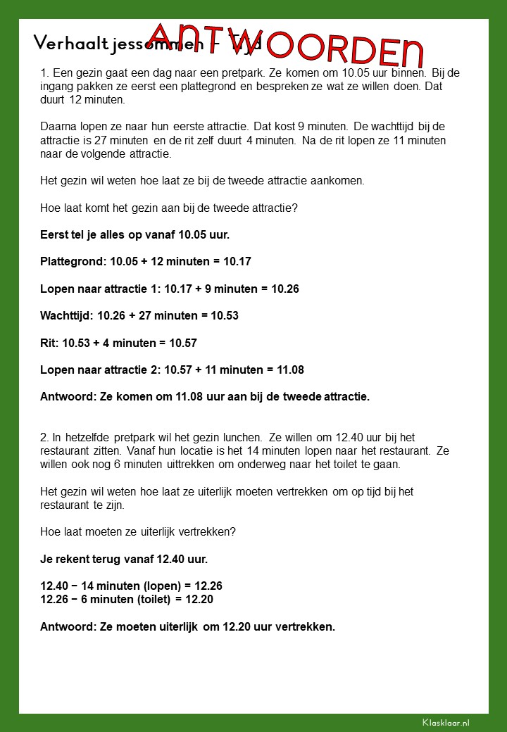In groep 8 rekenen kinderen met tijd in steeds complexere situaties. Ze oefenen met tijdsverschillen, tijdlijnen en het omrekenen van minuten, uren en dagen. De opdrachten vragen om logisch nadenken en het plannen van stappen binnen één som. Zo ontwikkelen leerlingen een sterk tijdsbesef en zijn ze goed voorbereid op het voortgezet onderwijs.